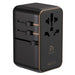 The Adam Elements T100L is a revolutionary 100W Universal Travel Adapter in sleek black, engineered to simplify international charging.