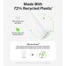 • Charger made with recycled plastic products* and comes in 100% plastic-free packaging