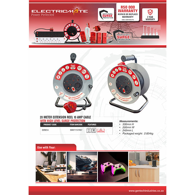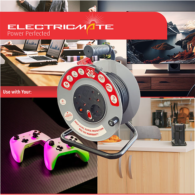 Introducing the ELECTRICMATE 20M 10 Amp High-Level Surge Extension Reel. A Durable and Safe Power Solution for Your Electronics