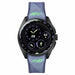 The 40mm case, caseback, and matching crown are crafted from lightweight and durable sandblasted titanium coated with black DLC, offering a bold yet comfortable presence on the wrist. A domed sapphire crystal protects the display, while a special New Balance logo engraving at 6 o'clock and a deadzone scale in New Balance colors add exclusive design details. The innovative bi-material rubber strap features a green embroidered New Balance logo, a textile inlay inspired by New Balance shoes, and a comfort cushion system for an enhanced fit during activities.