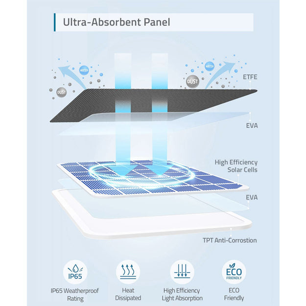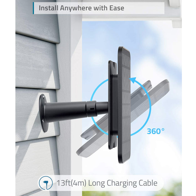 The 13ft (4m) cable allows for flexibility when choosing the location of your solar panel and ensures it can get maximum sunlight exposure. The 360-degree mounting bracket and wall anchors make installation easy and flexible.