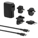 The charger is ready to go with interchangeable plug types (US/EU/UK/AU) needed for international travel included.