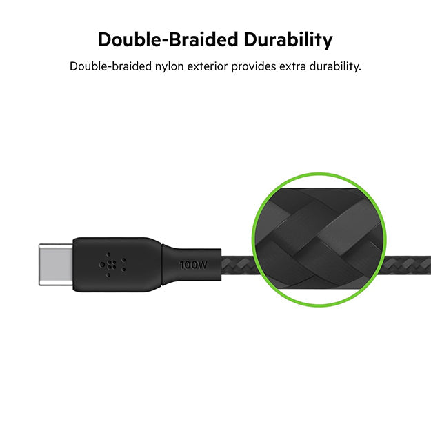 Belkin BoostCharge USB-C to USB-C Braided Cable 100W PD 2m Cable - Black
