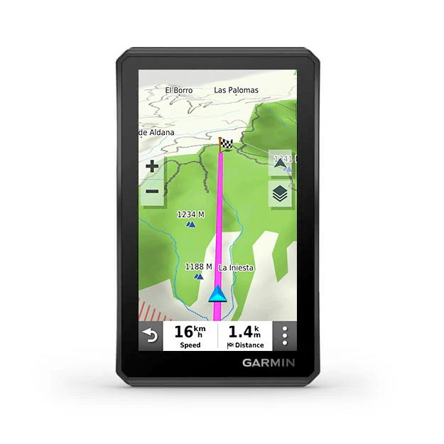 The rugged Tread off-road GPS is IPX7 weather resistant and features a glove-friendly 5.5″ touchscreen display.