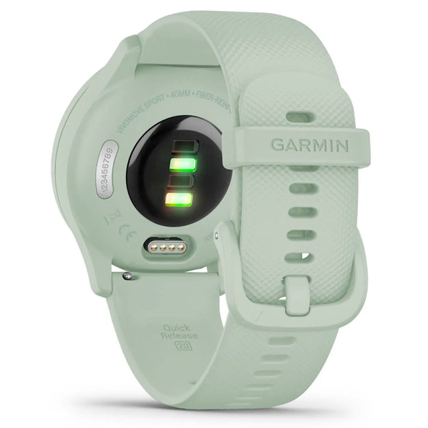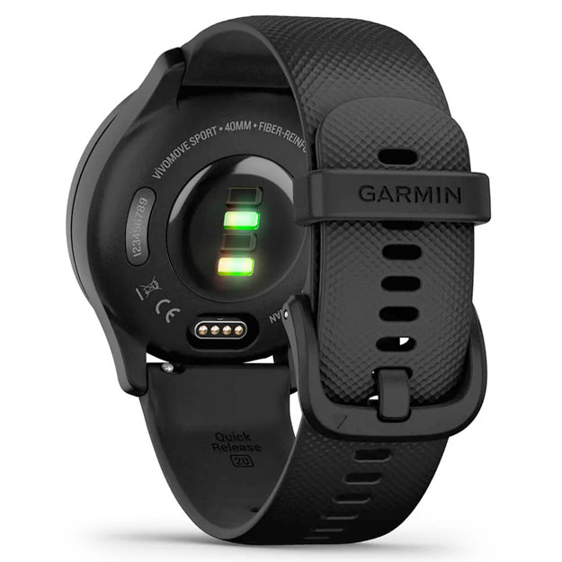 A SLEEK LOOK FOR YOUR WRIST Available in a number of colours, vívomove Sport features metallic coloured accents, a lightweight feel and a comfortable silicone band, making it perfect for work, the weekend — everywhere. And it’s compatible with industry-standard 20 mm quick release bands.