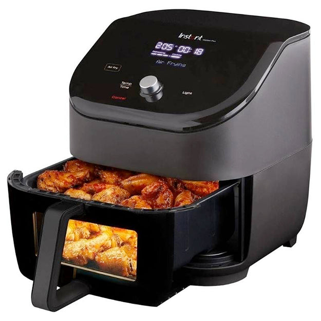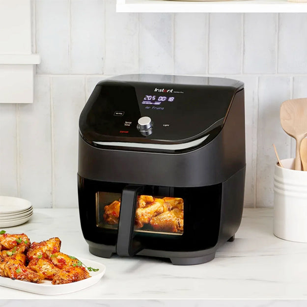 The Vortex Plus with Clear Cook technology is Instant Brand's most advanced and beautifully designed airfryer yet. The revolutionary Clear Cook window with internal light allows you to check on cooking progress without continuously opening the drawer and losing heat. The EvenCrisp airflow technology ensures crispy and tender results every time, with 95% less oil. Easily airfry juicy chicken wings and crispy fries, grill vegetables and meats, bake fluffy cupcakes and cinnamon rolls, roast zesty lemon chicken breast and garlicky potatoes, dehydrate your own biltong or fruit slices and reheat any leftovers perfectly!