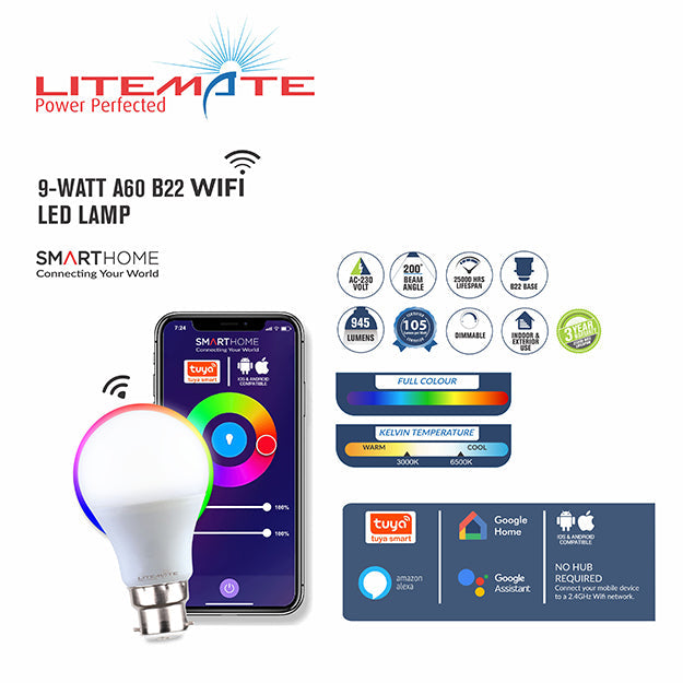 Introducing the LITEMATE SMARTHOME A60 9-Watt B22 LED: A Smart Lighting Solution for Modern Living