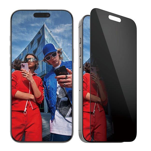 Powerful meets privacy! With this PanzerGlass Privacy Screen Protector Ultra Wide Fit for the Apple iPhone 16 Pro Max made of 60% recycled glass, your personal info is safe from the prying eyes of people sitting next to you on the train, in the coffee shop, or at the office.