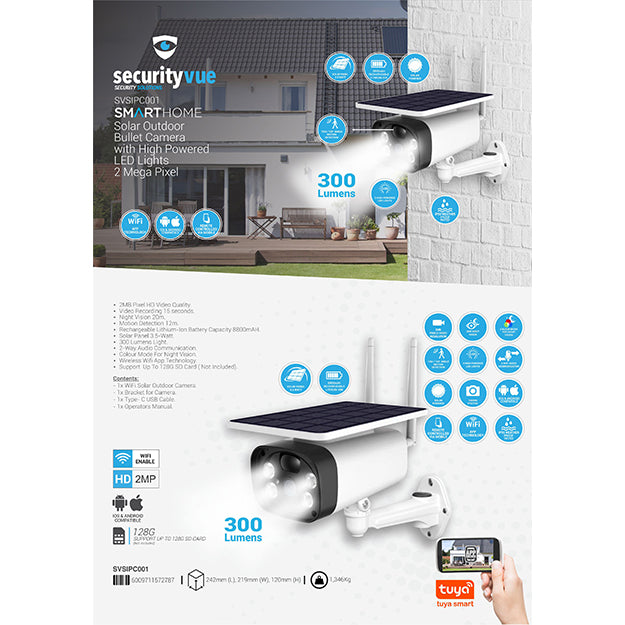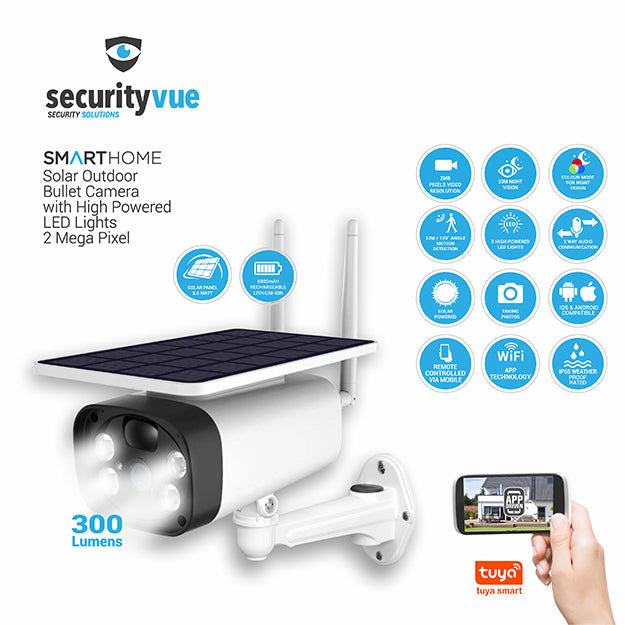 SecurityVue 2 Mega Pixel Solar Powered Outdoor Bullet Camera With High Powered LED Lights - White