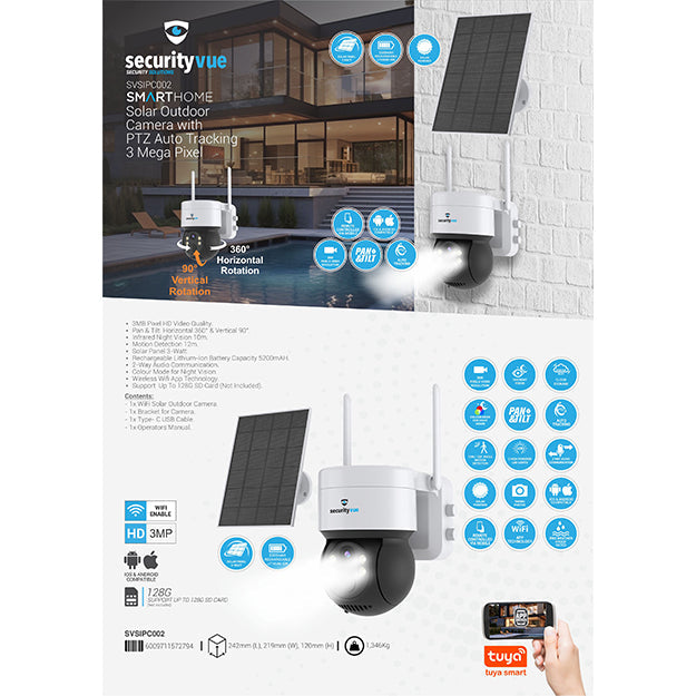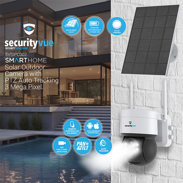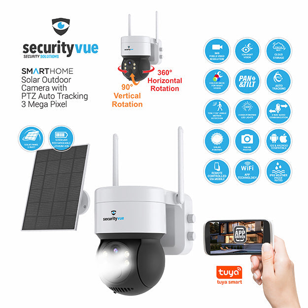 SecurityVue 3 Mega Pixel Solar Outdoor Camera With PTZ Auto Tracking - White